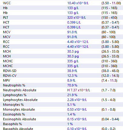 - FBC – for anaemia and thrombocytopaenia